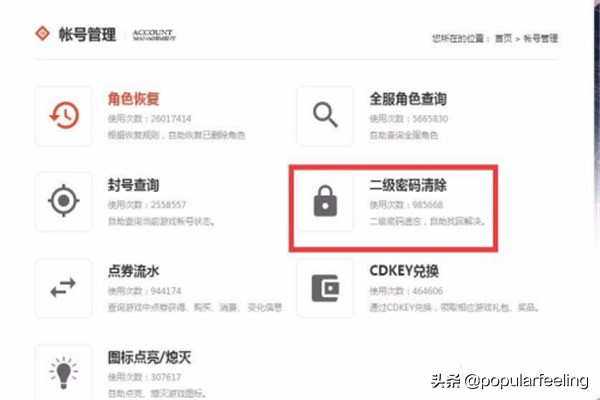 3.进入个人中心之后在账号管理栏目下找到“二级密码清除”,进入。
