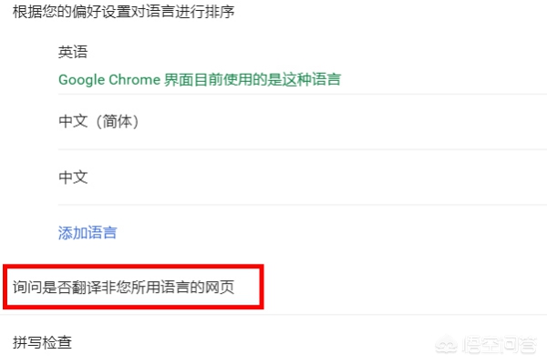 5、看到“询问是否翻译非您所用语言的网页”,如下图红框所示。