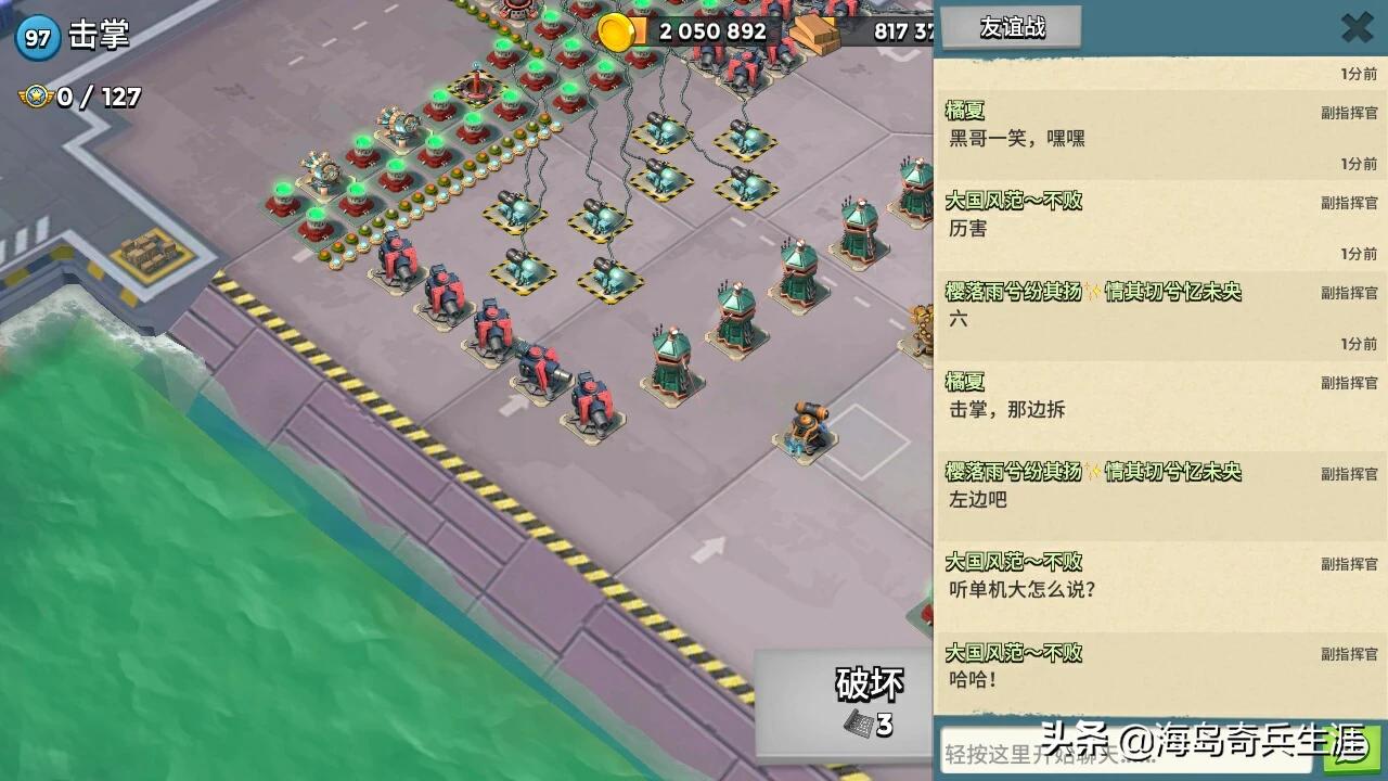 《海岛奇兵》这是一款良心游戏。即使你不充钱,你也一样可以冲进世界排行榜。你也能成为大神即使你不充钱也一样能享受到游戏的乐趣。这是一款策略塔防游戏。里面的画面背景和兵种的技能设计,以及各种副本模式包括,打玩家,特遣队任务和战舰航母各种玩法层出不穷。游戏操作性强。而且比较耐人寻味手感细腻。这款游戏发布已有五年多了。游戏也在不断的更新。每一次更新。都会带来更丰富的内容。更刺激的玩法。不一样的体验。能让你深深的爱上这款游戏。这款游戏我是刚开始出来的时候就玩,玩 这游戏有五年多了。他那给我很多乐趣,也让我深深地爱上了这个游戏。你不需要花费太多的时间,也能很好的玩好这个游戏。也能享受到这个游戏的乐趣。这是我这几年来对这款游戏的一个看法。这是一个真心不错的游戏,也希望大家能跟我一起去玩这款游戏。海岛奇兵这款游戏也欢迎你们。希望大家能加入我们海岛奇兵这款游戏伙伴团队里面去,也可以组建自己的特遣队。招募属于自己和自己队员交流聊天。收获真挚的友谊。一路越来越喜欢。海岛奇兵这款游戏的操作性以及可塑性还是比较强的。更新的速度也在不断的加速。各种丰富的内容层出不穷,新鲜的打法也越来越多。各种极限操作亮瞎你的眼睛。各路大神齐聚一堂,共同挑战极限。
