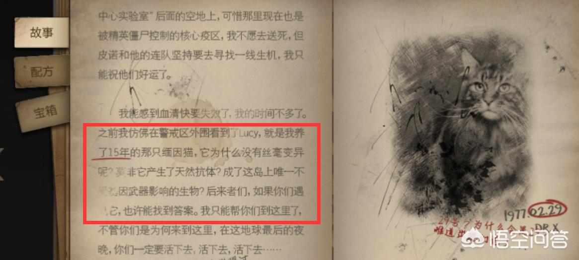 这就是游戏的背景故事了,故事中还提到了科学家的猫没有被感染,可能会在这只缅因猫身上找到答案,但是有玩家在地图中专门去找也没找到猫,可能这只是个隐藏彩蛋吧,并不会影响剧情和玩法!
