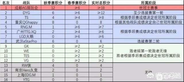 另外对于上赛季未取得好成绩,这赛季又是败者组的队伍来说,季后赛至少要打进第二轮才有参加世冠预选赛的资格。否则一输就直接被淘汰,相当于多打了一场季后赛而已,就比如说GK、WE、TES、VG等队伍。而且必须要强调的是,LGD大鹅由于是新军,上赛季是没有积分的,所以他们必须要争取获得好成绩,否则最多只能参加世冠预选赛第二轮而已。小伙伴们,你们这一份提前世冠晋级表有什么看法呢?欢迎下方留言评论说说你的观点哦!咱们评论区不见不散哈!