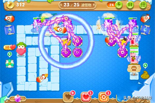 其次,利用技能和道具来增强防御力,如冰冻技能和炸弹道具可以有效地控制敌人。