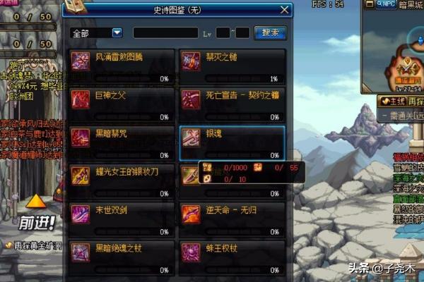 3、在史诗图鉴中,我们可以看到游戏中所有的史诗装备,在史诗装备的右下角还可以看到一个0%的数字,为史诗装备的进度;