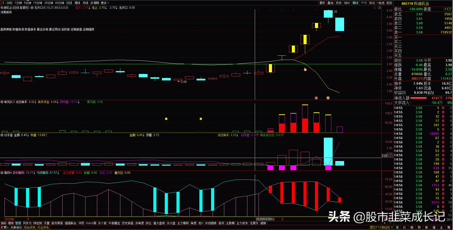 2.潜伏龙头,做这些短线爆发形的股票。只做第一第二的股票,这也是目前老铁总结出来的一个重要的情况