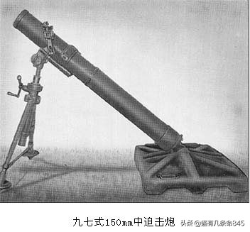 (5)九六式150mm中迫击炮;日本把150毫米口径的迫击炮称为中迫击炮,这种炮通常是装备独立的炮兵联队。1936年~1945年曾在日本军队服役,射程约3900米。