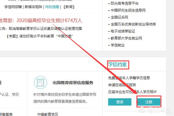 3、学信网也称为中国高等教育学生信息网,进入学信网首页后,往下滑动找到右侧的“学信档案”栏。