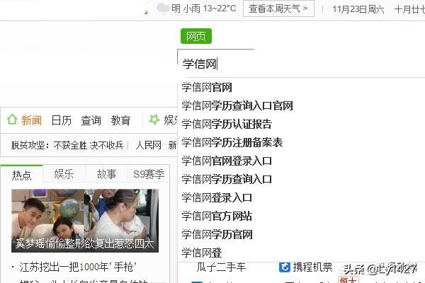 1、打开电脑浏览器,在首页搜索框内输入“学信网”并进行搜索。