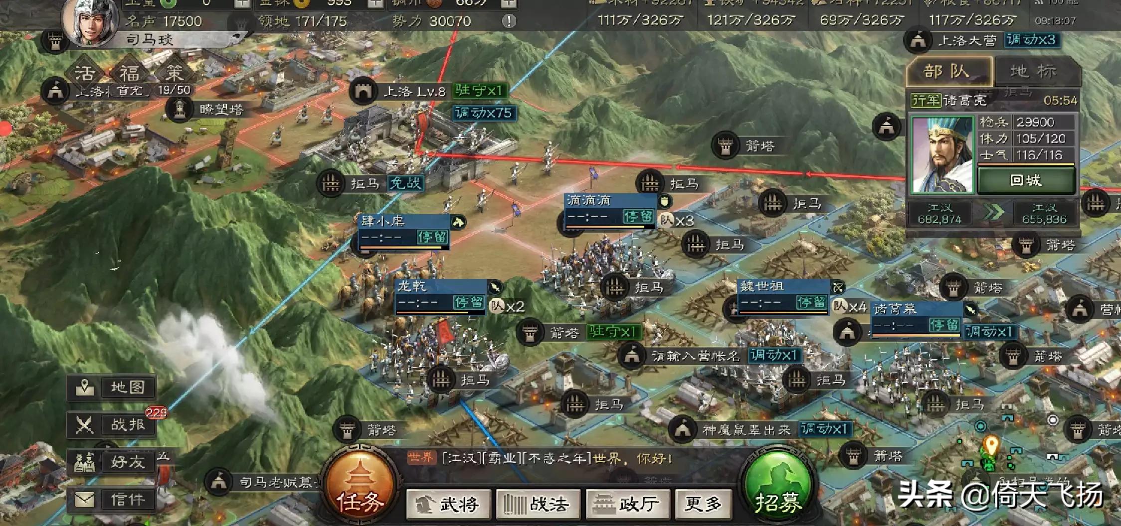 【屯田】(名声到3500开放)消耗3策书来获取资源。建议屯4级地或5级地,3级地以下屯田获得的资源偏少。