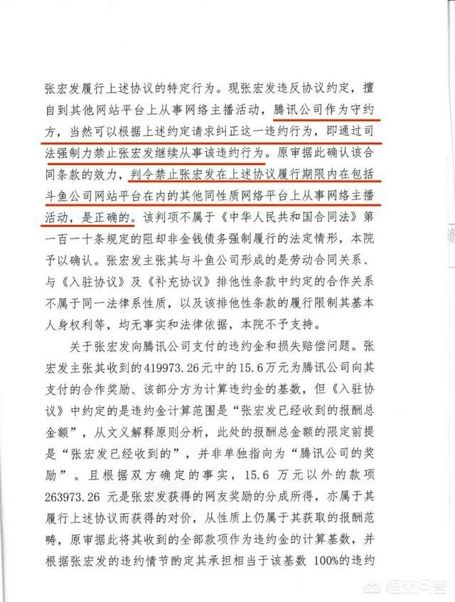 可是现在呢企鹅电竞已经拿到了法院的裁判书,这判决书中有两条对张大仙影响最大的,应该就是下面那两条,首先第一个是罚款,张大仙300万元给企鹅电竞,当然了现在对于张大仙来说300万也不是什么太大的难事,最要命的是他不能在现在的斗鱼直播在进行直播了,这有可能就会触及到他和斗鱼的合同