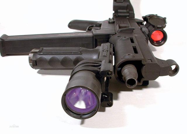 UMP机身上也妥妥的装备这皮卡汀尼导轨,可自由装上各种战术瞄具(红点、全息、2倍、4倍、8倍随你,15倍就不需要了)此外,UMP的护木左右和下方都可以安装上RIS导轨并安装各式配件(垂直、直角以及战术灯,镭射灯之类)。