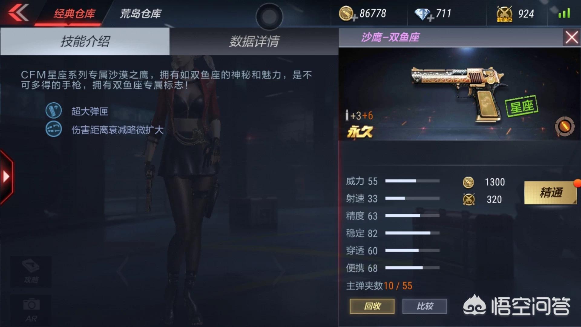 这把紫色品质副武器比其他紫色品质副武器都要强,手感非常好,手枪上扬也不严重,后备弹夹达到修罗天神水准,评价超级棒。我被这把枪打出心理阴影~给大家说个经典案例:那天沙漠灰地图中我手持沙鹰天神火力全开蛇皮走位开启,砰砰砰的沙鹰天神把主弹夹子弹数19的子弹全部打完,我发现那位丝袜特萌新就手持沙鹰双鱼座打了我一枪,然后我发现我的天神是夕阳红枪法弹道,19颗子弹普通倾盆大雨般的冲向那个丝袜特结果打了他一地子弹就被他两枪带走~这是个多么痛彻的领悟。