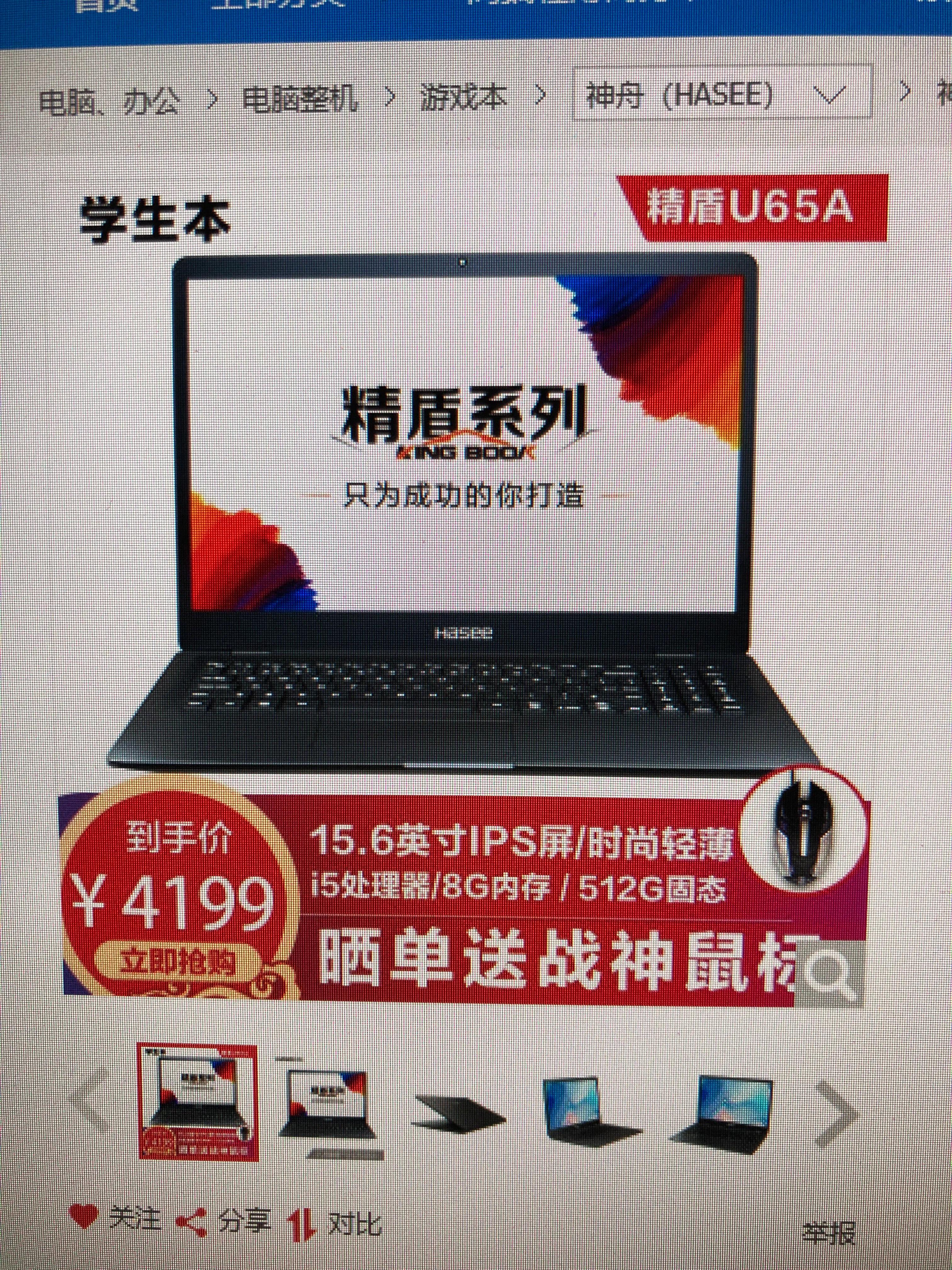 推荐二:万金油型,神舟精盾u65a畅玩版,4199,具体配置自行搜索就好,同价位罕见的低价全能本,搭载gtx1050显卡,缺点是售后服务一般。推荐三,超薄本,荣耀 MagicBook 14,4199性价比高,最新充电器,支持超级快充,缺点是Type-C接口为USB2.0速率。