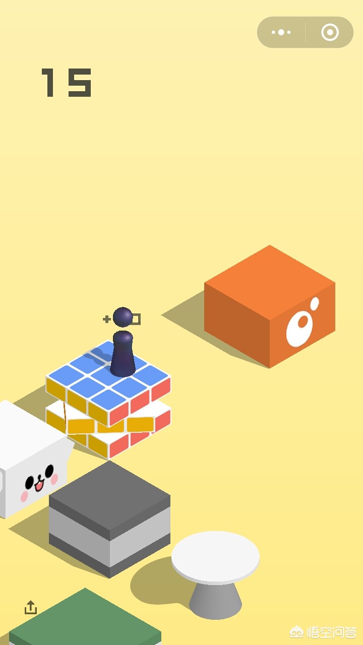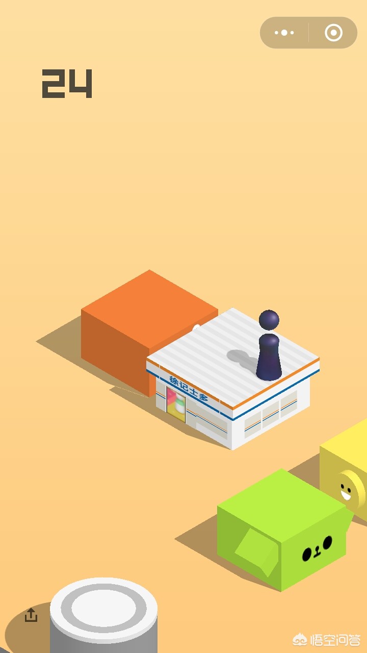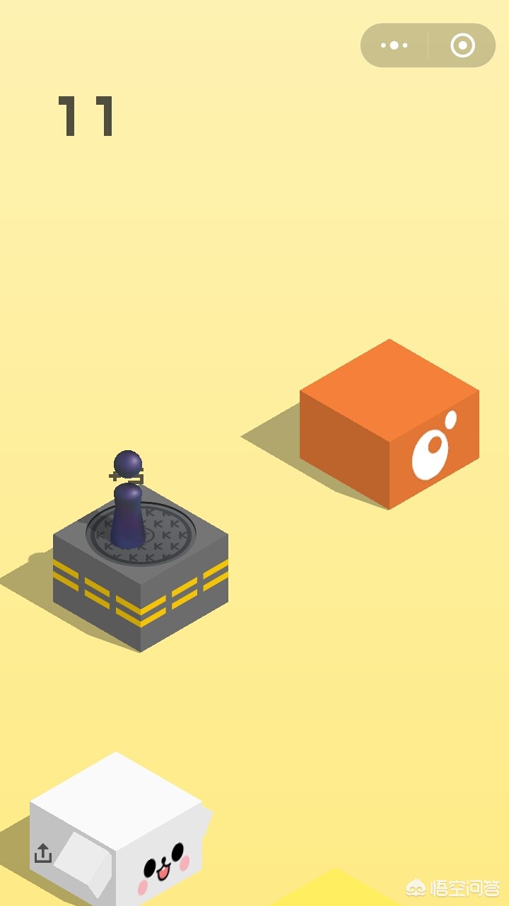 一.着眼点, 在“跳一跳”游戏里,小人面前每个积木的大小,形状,体积都不同。而且它还会变换方向。我试过,如果目标只是小人能跳到第二个积木上,很容易造成它站的位置很偏,距离下一个积木的位置过近或过远,这就不能通过肌肉记忆进行惯性判断了。所以,在没有出现小白点奖励的时候,跳之前一定要着眼点在每一个积木的中心点,不管它是卫生纸药罐还是便利店。这样可能会累眼睛,但是拿分效率最高。当然我还试了别的着眼点位置,比如盯着小人的脑袋,也都是可以的。
