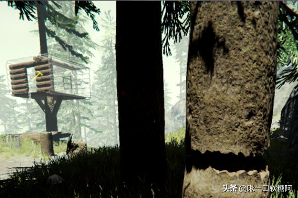 第四是砍树机制;游戏里砍树不是砍一个地方就可以砍倒,而是要围着转着砍才能砍倒。
