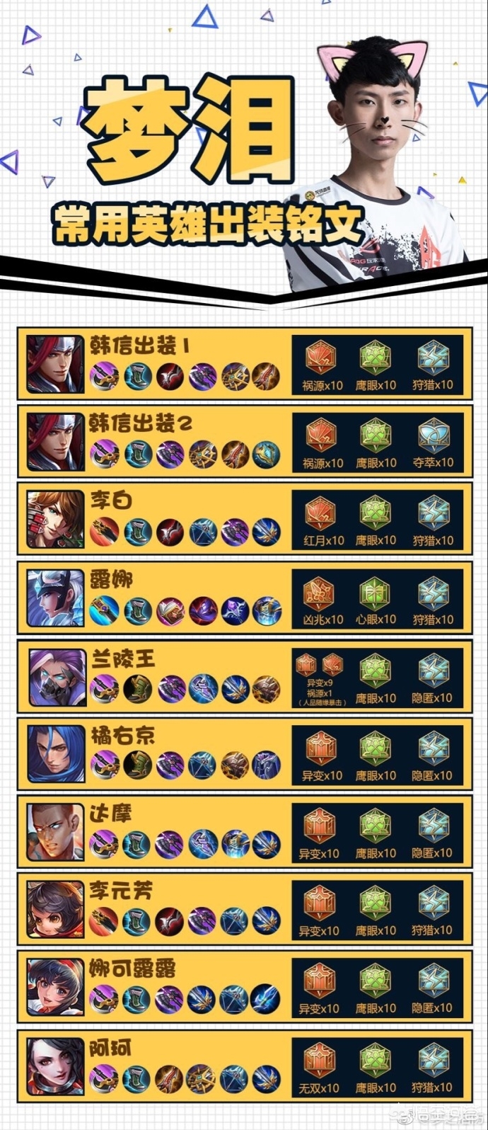 别的我不说,就单单看这露露的极限输出流装备,我就得为梦泪的自信鼓一把掌,而他的铭文配置也是标准的百穿穿透流,真要是发展好的话怕是肉也经不住一下子啄。