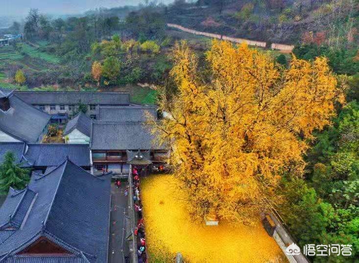 这座寺庙位于西安,始建于唐贞观二年(公元628年),距今约1400年,为终南山千年古刹之一。寺里的这棵古银杏,传说为1400多年前由唐太宗李世民亲手种植,目前已被国家列为古树名木保护名录。这棵银杏也就是此前在网上大火的网红树,第一次见到的时候就不禁感叹“惊为天人”,可谓最美银杏,它长这样: