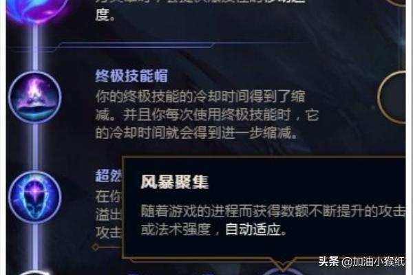 3、在三个宝物里,选择“终极技能帽”。减少大招百分之十五CD,大招又能减少Q技能CD,可以帮且狗头快速叠Q技能伤害。