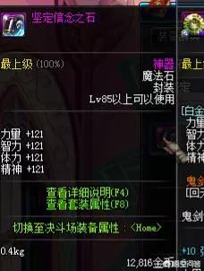 先做出一身寂静9,前期我建议你买个右槽,忆之符石,或者买个坚定信念之石,都是加100多四维,但是忆之符石比坚定石头贵100万左右。