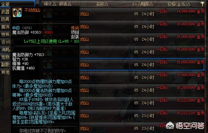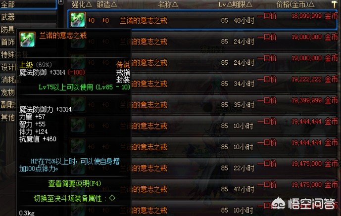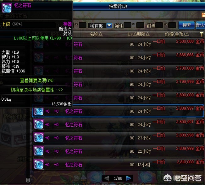 右槽可先购买个90级神器魔法石–忆之符石,120点四维,拍卖价250w