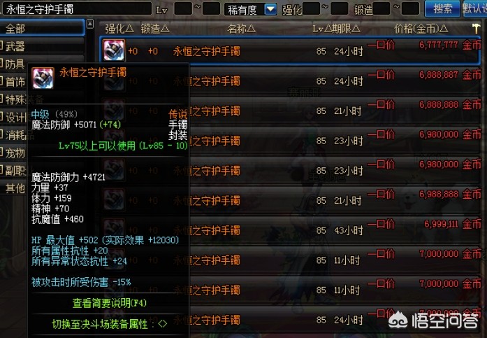 手镯建议选择永恒之守护,拍卖行价格约700w,相比王权之守护,只差20点体力不到,价格却只是它的一半不到。