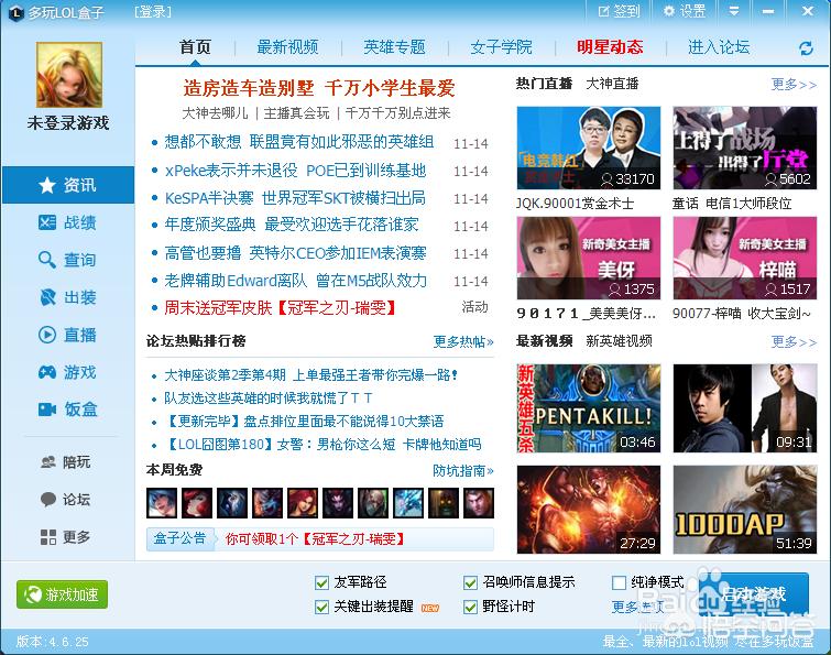 同时多玩盒子的界面上有最新最全的LOL资讯,同时也能将流量倒入到自己的YY直播(虎牙直播)。