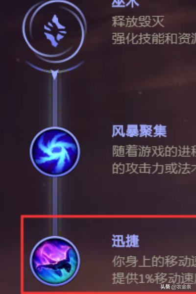 6、最后点击“迅捷”,迅捷的效果是增加移速,这样可以让金克丝在战场上更加灵活,机动性更高,这个效果加上金克丝的被动,可让金克丝在战场上自由穿梭,不用害怕刺客近身。
