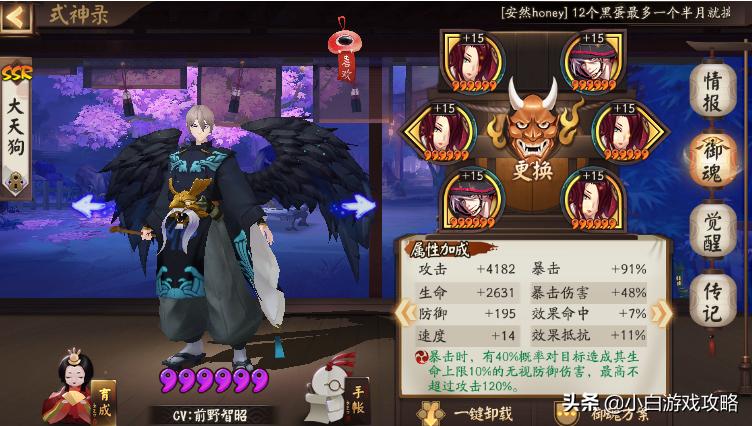 第二点:你可能御魂配错误了,要知道大天狗他说一个多段伤害的一个式神,那也就是说你要是用破势这种御魂对大天狗来说是完全没有用的。所以推荐的御魂一定是带针女,这样伤害才是最大化也是输出最高的。