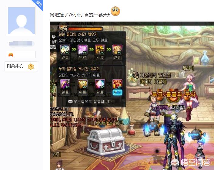 最近一位玩家由于出国网络差的原因,就改玩了韩服的DNF,并且秀出了韩服DNF的站街奖励,原来韩服也有站街奖励呀,不过韩服的站街奖励跟国服的不一样,国服的在家挂机就可以获得奖励,而韩服需要在网吧挂机才可以获得奖励。