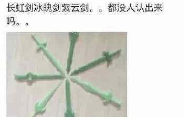 长虹剑、冰魄剑、紫云剑,都没人认出来吗?这几把塑料剑在小时候也不值几分几毛,但是只要拿出来,就是炫富。