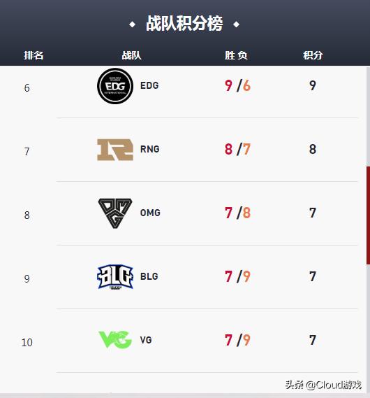 EDG排行第六,RNG第七,再往下比分都是非常的危险。而RNG战队对决苏宁的比赛也变得至关重要。这样一看,RNG战队的积分并不乐观,他们基本上达到了50%的胜率,这在季后赛当中并不占据优势,越来越多的粉丝开始想念Uzi。