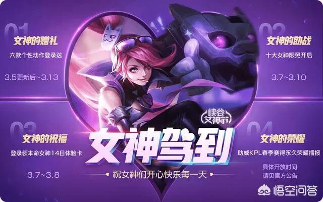 最后,就是对于女神节的其他活动,比如说有免费的铭文宝箱和挑战任务得到一些回馈好礼等等,还有就是女神节的新皮肤上线,除此之外,就是王者荣耀官方为了迎接KPL春季赛的开启,而特意的联合了女神节这个活动,并且给大家送出了相应的铭文碎片相应的钻石,还有英雄碎片和荣耀播报等等一些奖励,而对于金币消耗活动的开启,这就是老话常谈了,这个活动的开启也就意味着在下周的时候,王者荣耀官方将会上线新英雄马超。