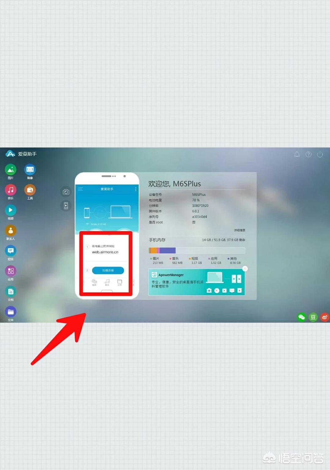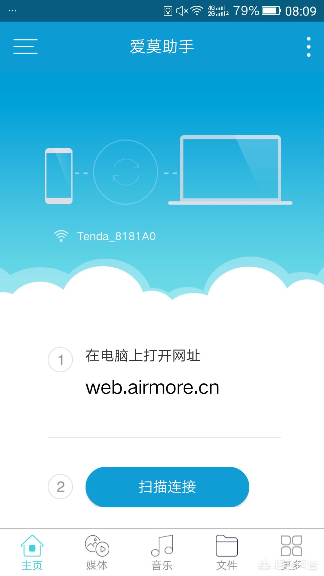 第一款:(爱莫助手)这是一款手机和电脑互传文件的app。用这个软件传输文件,非常方便快捷,基本都是几秒钟就可以互传。省去了用手机数据线连接的麻烦,而且传输的视频不会失真。只要手机和电脑都处于同一个wifi网络上。首先在电脑打开软件上面提示的网址,打开之后,电脑会出现一个二维码。然后手机点击爱莫助手软件中的扫描连接。