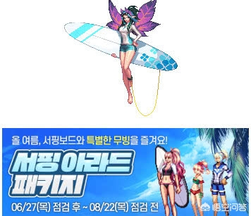 近日,韩服曝光了夏日套外观,依然是泳装风格,好像还有冲浪板,外观还是挺漂亮的。最有趣的是男法,竟然穿的是女装。