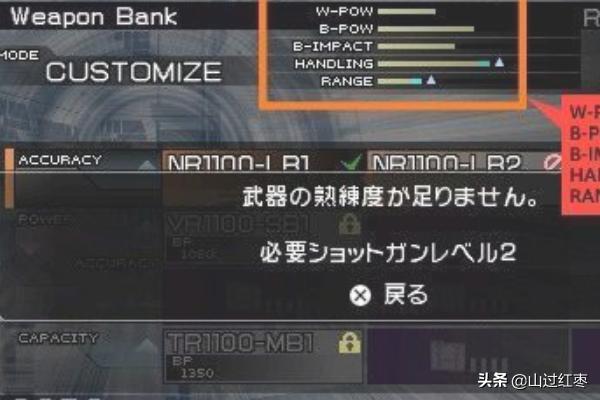 4、w-pow是武器威力、b-pow是子弹威力、b-impact是对敌抑制力、handling是武器的操作容易度、range是武器的射程。