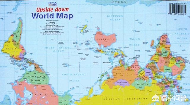 除了东西方向的世界地图,还有南北方向的世界地图,是不是看起来有点不习惯。
