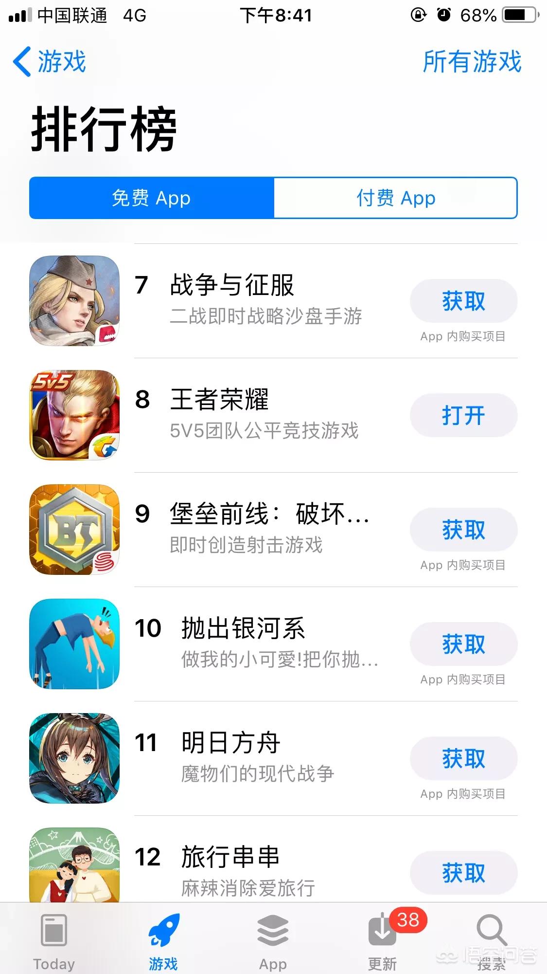 说到当前人气最高活跃度最高的手游, 安卓最火的游戏我不清楚 这是iOS的下载榜单 这是免费app排行榜,