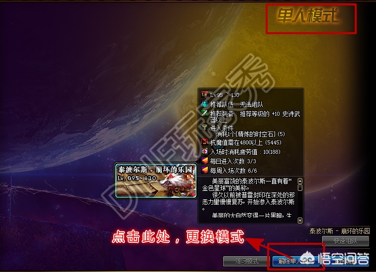 DNF中95级必须做的日常泰波尔斯,是刷单人还是组队,二者有啥区别