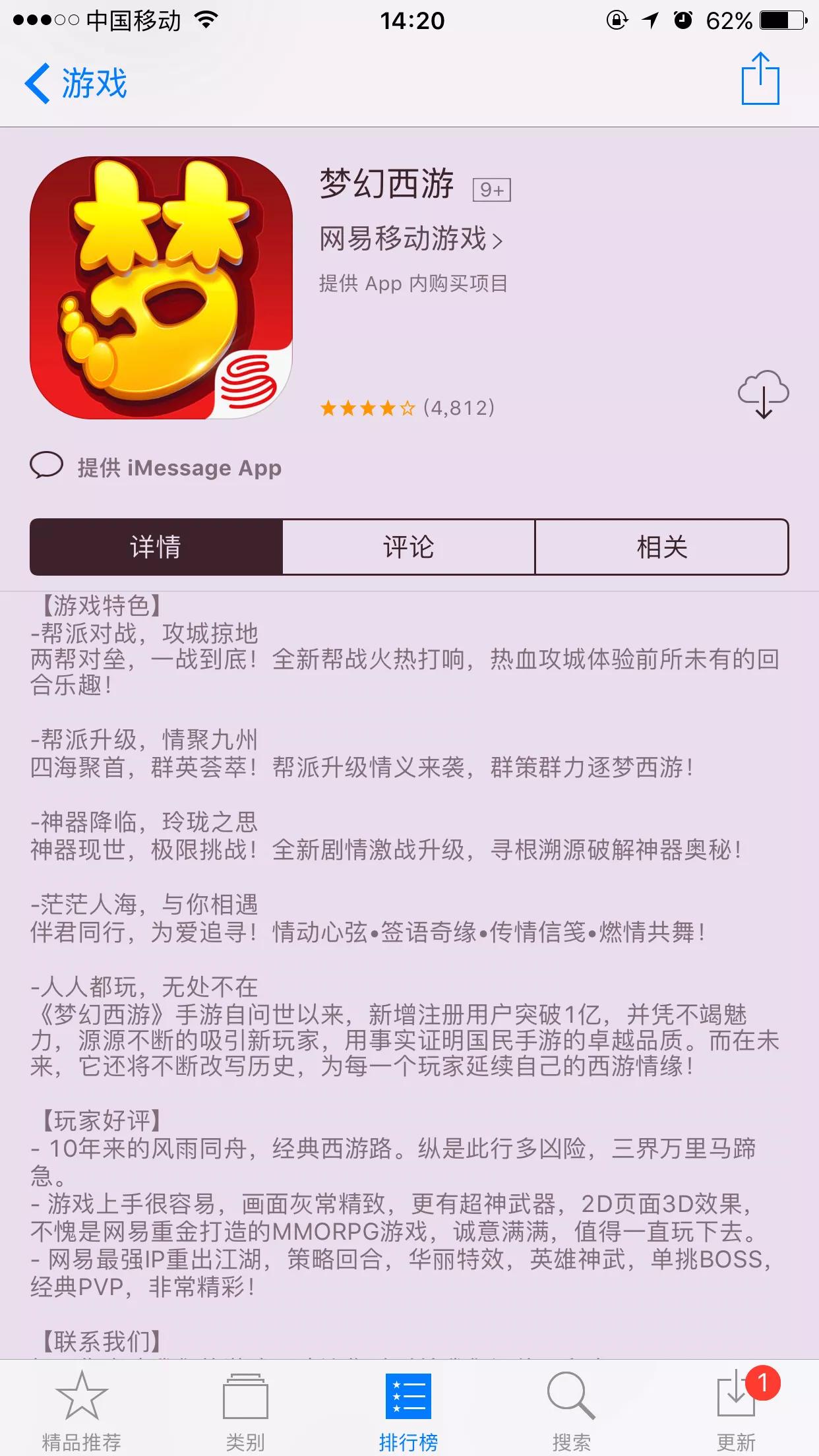No.1:网易出品的《梦幻西游》相信大家80,90后有大部分人都玩过,这是一个情怀,一代人的记忆。不得不说网易很厉害,抓住了人们的消费心理。在王者荣耀排行老大的情况,它一直稳居iOS畅销榜第二。