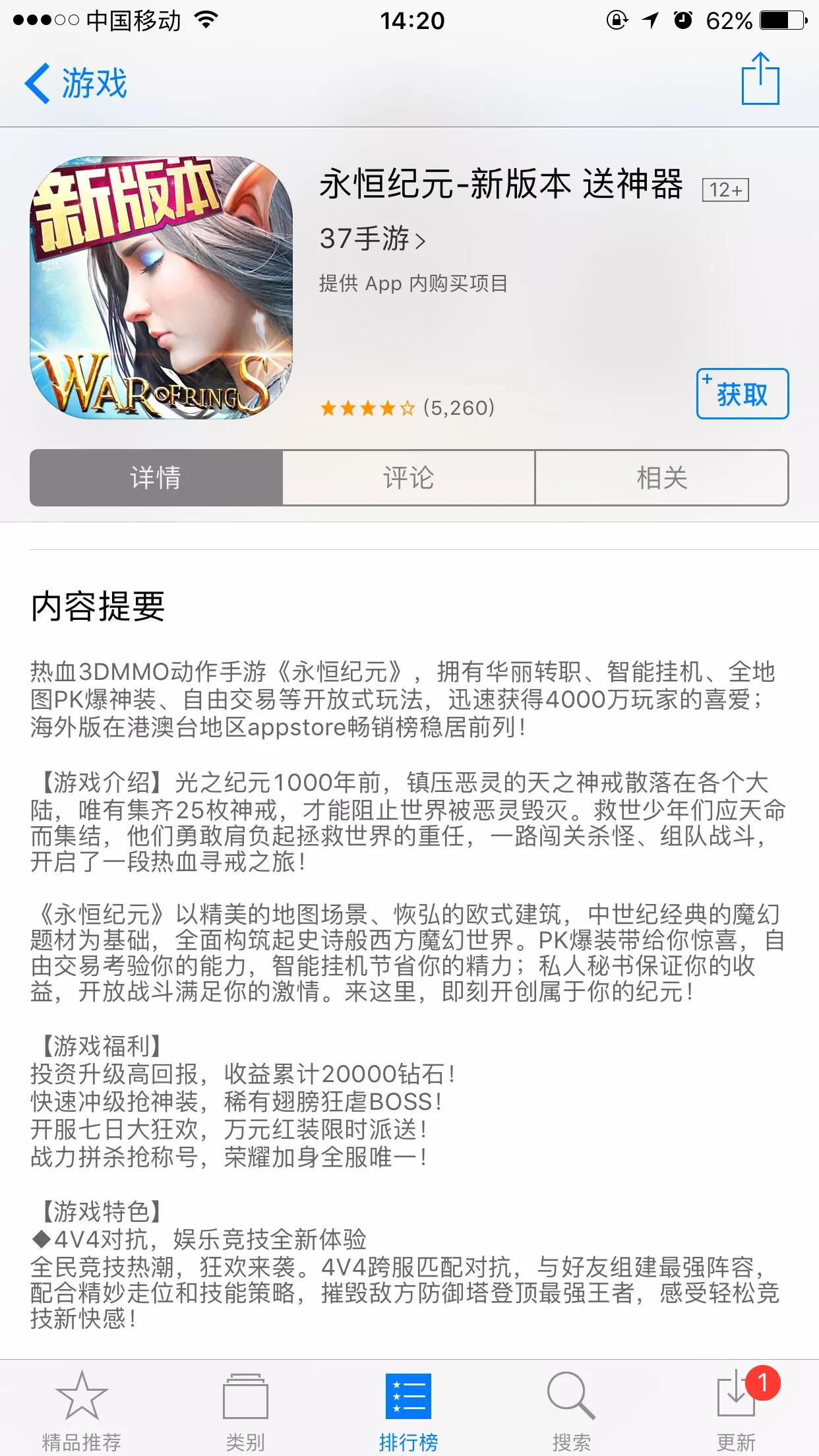 No.2:37手游出的一款3DMMO动作手游《永恒纪元》,这款游戏以欧美魔幻风格为主,描绘了一个剑与魔法,龙骑士变身的庞大魔法世界,其中添加了一些特别的元素,比如击杀玩家掉装备等,可玩性还是很高的,喜欢西方魔幻风格的朋友可以试一试。