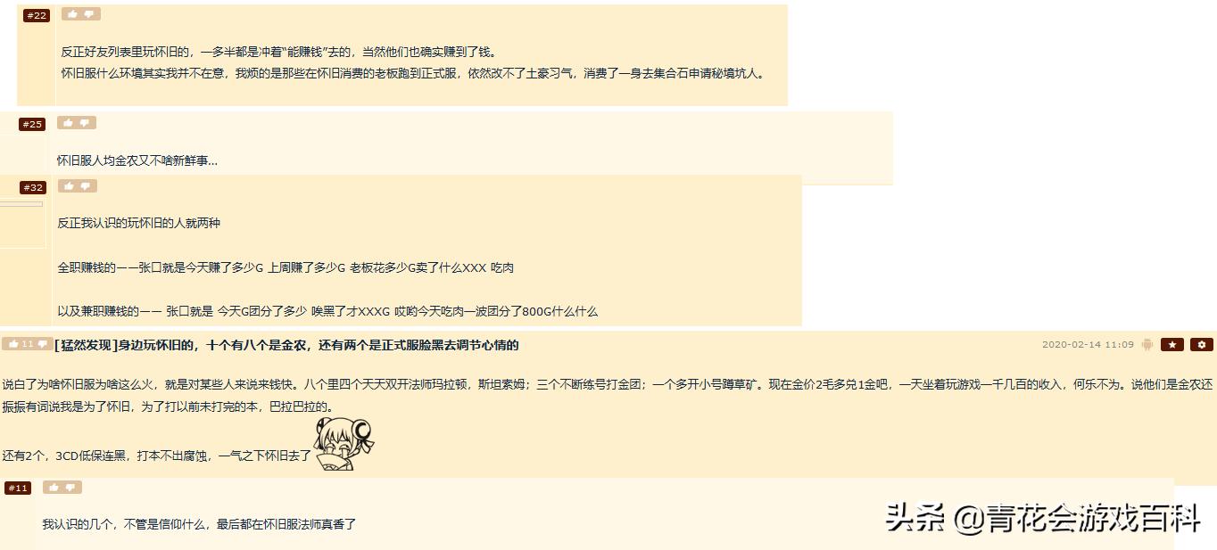 目前在怀旧服里其实无论是用同步器进行多开还是用别的什么方法多开赚金其实都特别正常,前些天我在某论坛看了个帖子,目前其实大家对怀旧服的态度是基本默认了绝大多数玩家都是“打金者”或是“消费老板”,基本已经很难见到单纯照着十几年前老路线体验游戏的玩家了。