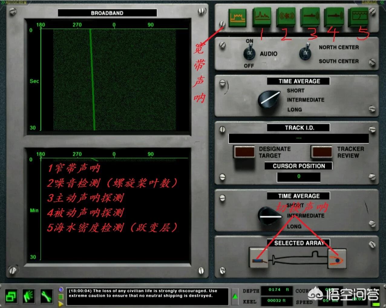 这次介绍游戏里的洛杉矶级核潜艇平台,有潜艇操作界面,声呐界面,无线电收发界面,雷达界面,海图界面,武器操作界面,TMA 界面,潜望镜界面,只能传9张图这里取消掉雷达,无线电界面。