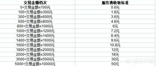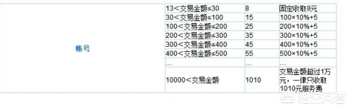 如果是账号交易的话,13-30元之间的交易额,一概收8元的手续费,其他的交易额请参照下图说明。