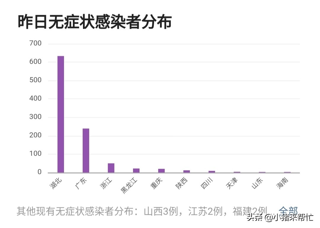 根据最新消息,国内无症状感染者近期的数据持续走低,何为无症状感染者?无症状感染者就是自身携带病毒,由于自己的免疫力强大 并没有染上病毒,但是仍然具有传染性,所有戴口罩任是最简单有效的防控方式。目前来看,无症状感染者多多处于湖北、广东、浙江等地。所以这几个省的居民仍需注意,出门在外一定要带口罩。