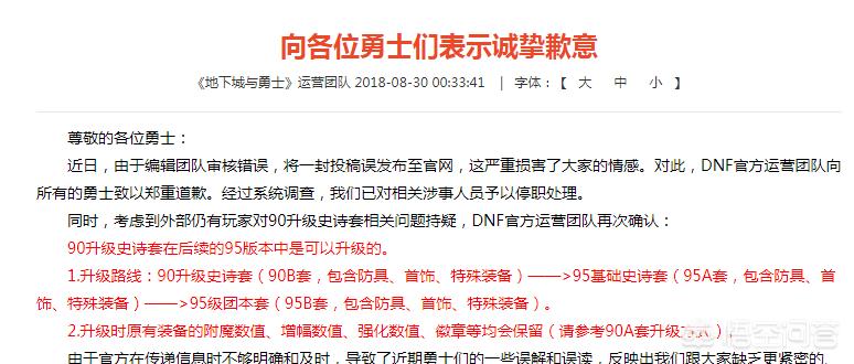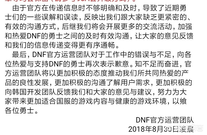 在8月30号当天凌晨的时候,地下城与勇士官方运营团队发出来一条致歉信息。
