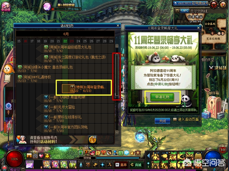 DNF11周年登陆活动,“申请礼物”按钮在哪里