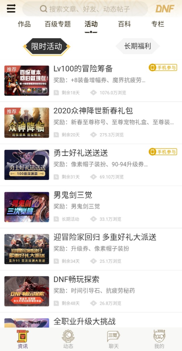 可以下载dnf助手了解最近福利活动,dnf助手是腾讯游戏官方出品的《地下城与勇士》的移动服务软件,包括了资讯、活动、社区、平台投稿、个人信息、装备查询等dnf综合软件。