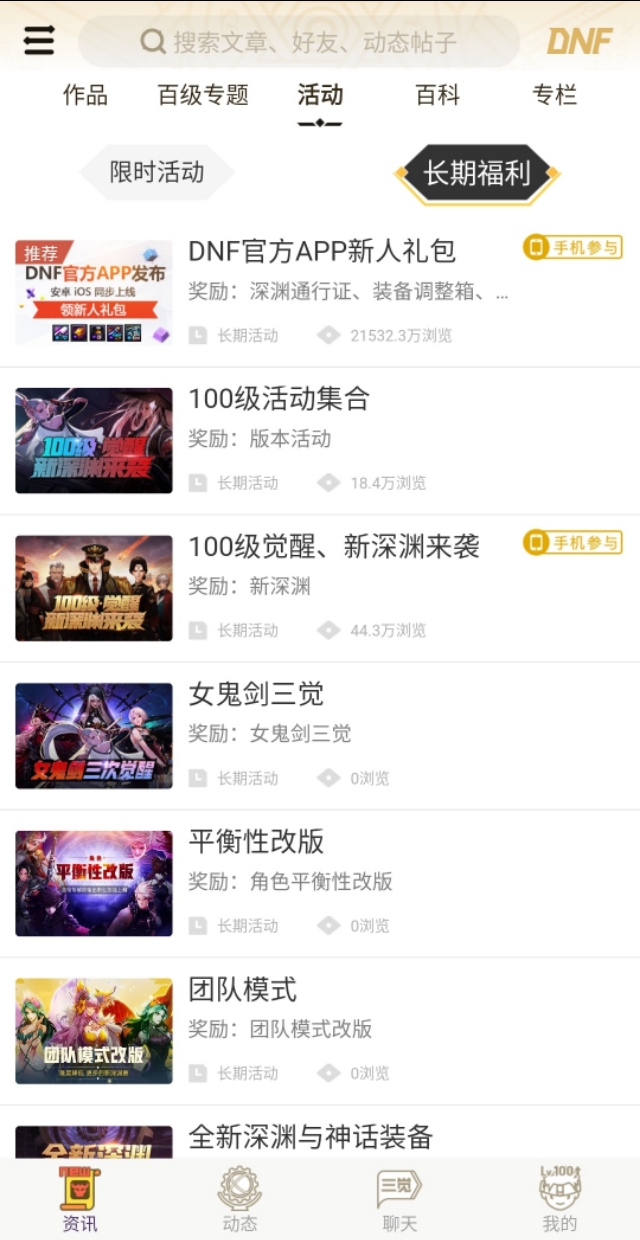 当然dnf助手不只是查看活动的软件,你还能第一时间了解dnf资讯、去论坛跟水友尬聊吹水,或者查看战力打造自己的dnf勇士。