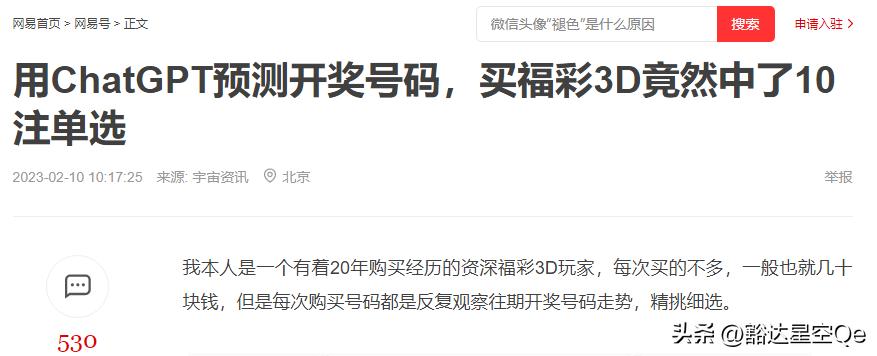至于用它来买彩票,我觉得这不一定是实用的,当然,我也在搜索中发现过它做过类似的事件,比如下图中的图所示: