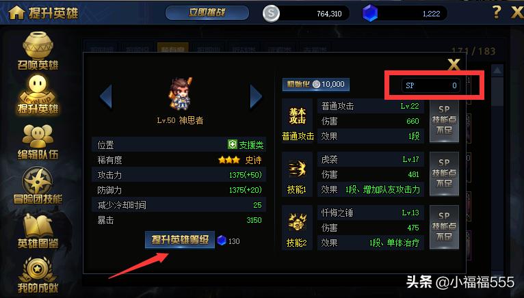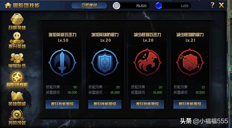 第一点,提升英雄等级,提升英雄等级需要花费蓝水晶,蓝水晶主要通过抽英雄获得,重复的就换成相应蓝水晶,提升等级后可以学习技能,这个推荐主堆普通攻击。奶系职业可以适当学习buff技能增加队友攻击力。有范围性技能的可以选择多加几点。