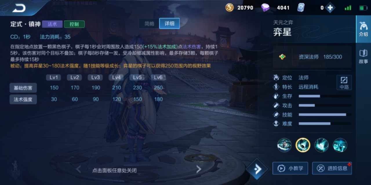 劣势:弈星的劣势在我看来,就是太容易被近身,被切。因为弈星没有位移没有硬控。在遇到韩信猴子这样的英雄毫无还手之力,所以对全局意识的掌控要比其他英雄多更多的能力。注意敌方刺客打野的动向。而且最主要的,弈星的技能难度相当高,棋子虽然多,但是很难中,毕竟就那么几个棋子,如果空了的话那基本上团战就没作用了。所以一定要勤加练习,提高技能命中。